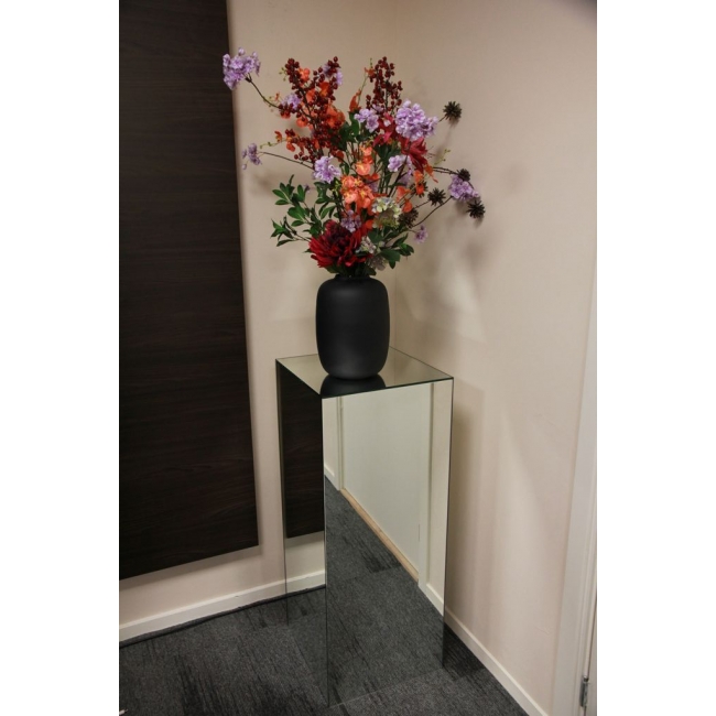 Les matières effet miroir sont souvent associées avec le raffinement et le cachet. Pour cette raison, les colonnes miroir sont utilisées pour des présentations d'objets de luxe, des événements et dans des showrooms. Le socle a une apparence calme et lumineuse, attirant toute l’attention vers l'objet. Une présentation simple se transforme ainsi en un accroche regard puissant. Le socle miroir renforce également la mise en valeur d'une œuvre d’art ou d’une sculpture dans une galerie ou votre intérieur. Le reflet ajoute de la profondeur et crée une apparence moderne et luxueuse.